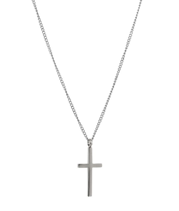 Halsband av en 1,5 mm nätt pansarlänk i stål med ett kors med en blank och en matt sida som hänge.