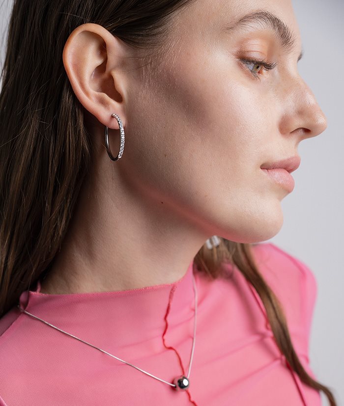 Blanka creoler i 14k Guldpläterat stål med infattade kristaller.