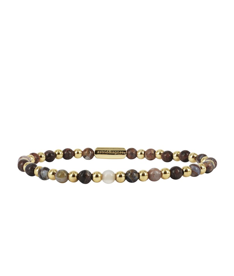 Kularmband av vackra Pietersitestenar och detaljer i 14k guldpläterat stål.
