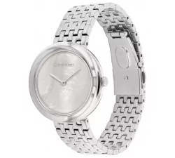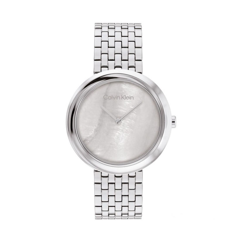 Calvin Klein Twisted bezel är ett elegant dam klocka i stål med pärlemotavla