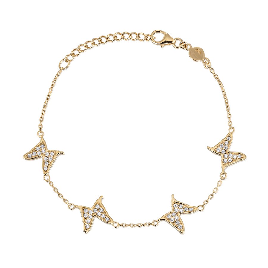 24k guldpläterat 925 sterlingsilver med 4 st fjärilar. I kollektionen finns även passande halsband och örhängen.
