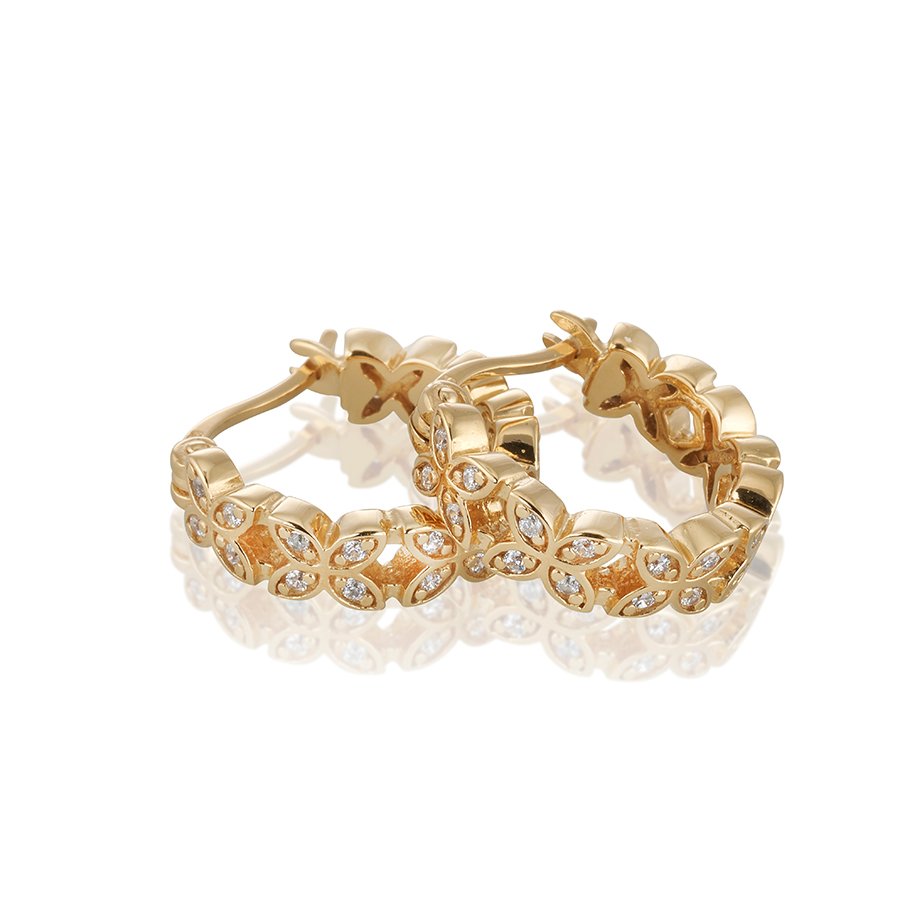 Sammanfogade ellipser fylld med stenar skapar dessa vackra örhängen. 24k guldpläterat 925 sterlingsilver. Sten: cubic zirkonia. Storlek: creol 15mm, bredd 3,8mm