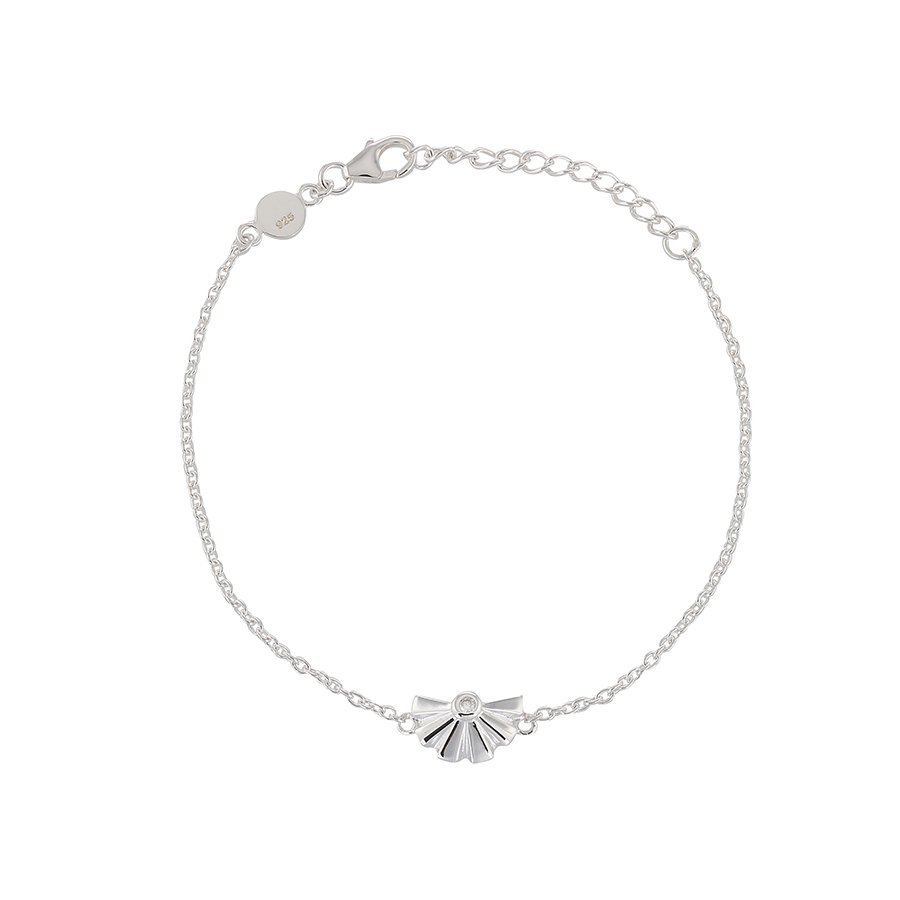 Sunfeather – en vackert veckad solfjäder med en sten på toppen. Ur denna kollektion med inspiration av solen finns även matchande halsband och örhängen.