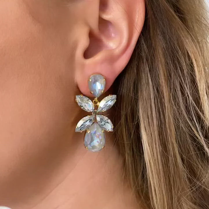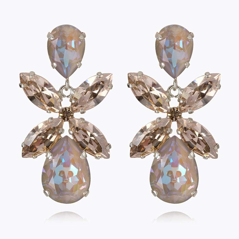 Våra ikoniska Dione-örhängen med gnistrande kristaller av högsta kvalitet är iögonfallande och detaljen som passar för alla festliga tillfällen. Designen är inspirerad av en blomma och örhängena är tillverkade av förgylld mässing i 18K guld.