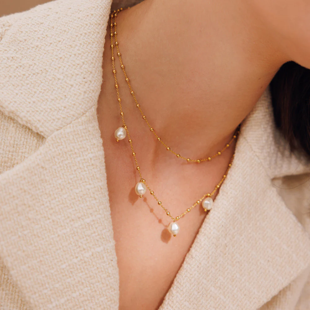 Upptäck vårt Emmy Necklace, ett minimalistiskt halsband som utstrålar sofistikering. Designen präglas av mindre pärlor som hänger vackert längs kedjan. Detta eleganta halsband är perfekt att kombinera med andra halsband, för att skapa en personlig och stilfull look. Oavsett om du bär den ensam eller tillsammans med andra favoriter, så adderar Emmy Necklace till en touch av glamor till vilken outfit som helst.
