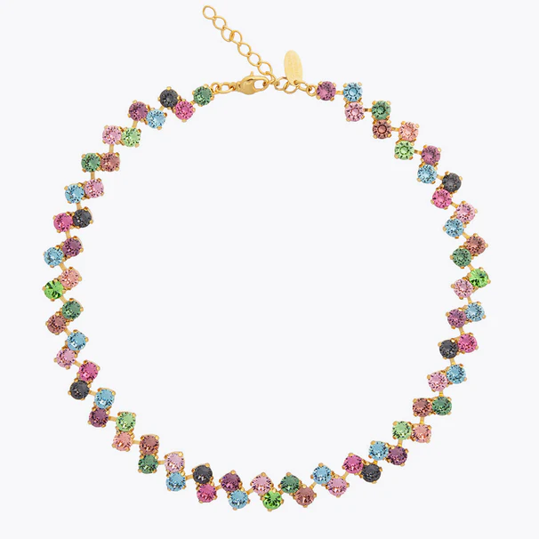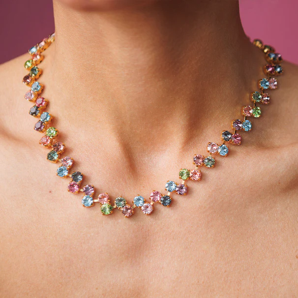 Fiona Necklace är en vacker och lekfull blandning i Rainforest Combo eller Crystal som kommer att vara det ultimata feminina statementsmycken. Denna form och färg på kristaller är en ny favorit för denna höst/vinterkollektion som passar alla kläder, även om det är med en kashmirtröja eller med en enkel t-shirt. Välj mellan Rainforest Combo eller Crystal. Fiona-kollektionen kommer i örhängen, halsband och armband.