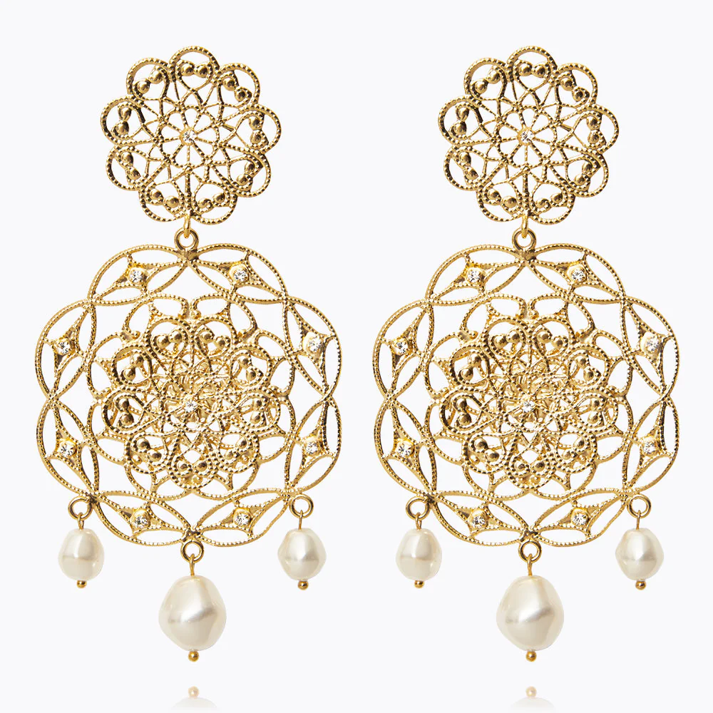 En uppdaterad version av våra bästsäljande Gardenia Earrings! Gardenia Pearl Earrings är de ultimata statement örhängena som kombinerar bohemiska inslag med tidlösa pärlor. Styla ihop med din favorit sommarklänning, eller varför inte med en enkel vit t-shirt för en mer avslappnad look?