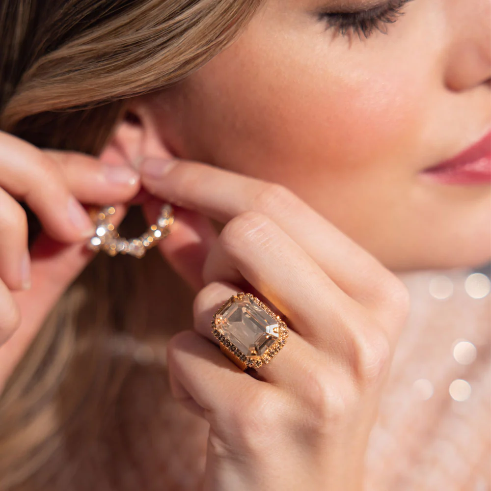 Lydia cocktailring är en elegant ring inspirerad av det glamorösa och romantiska 1920-talet. En rektangulär kristall omsluten av små gnistrande stenar.