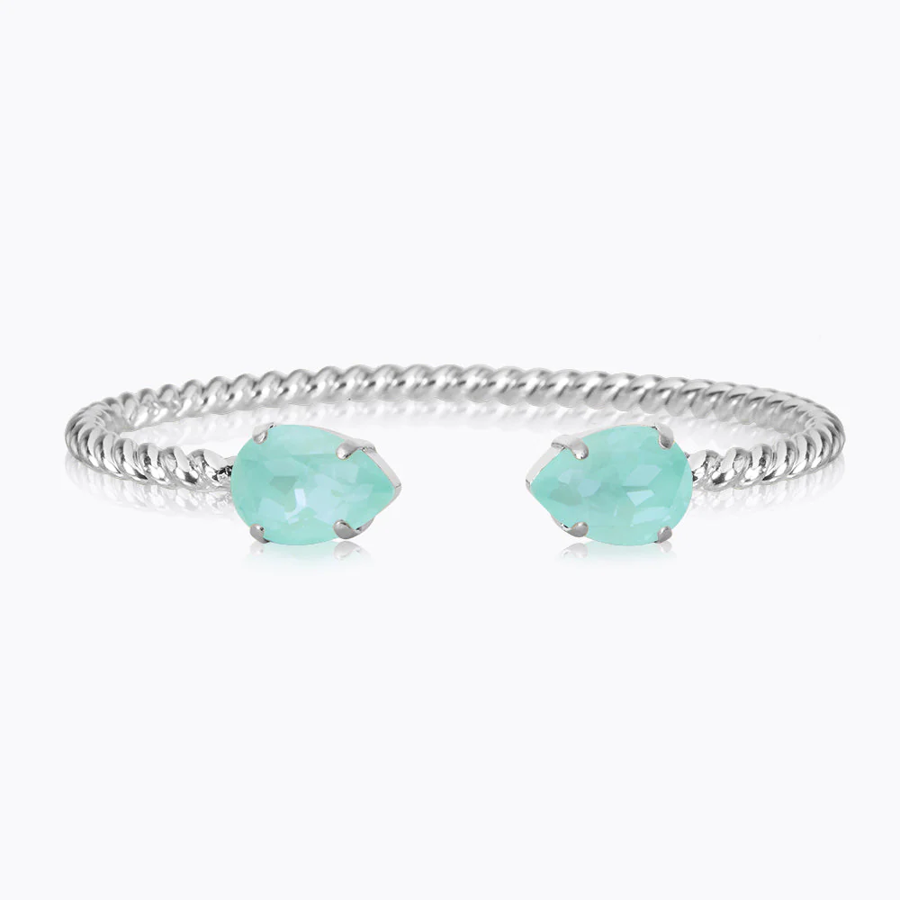 Vårt klassiska Mini Drop Bracelet är en stilfull detalj på din handled och gnistrar tack vare sina två droppformade kristaller av högsta kvalitet. Armbandet har en känsla av rep tack vare den vackert vridna metallen. Storleken kan justeras för att passa just din handled. Detta eleganta och gnistrande smycke passar alla