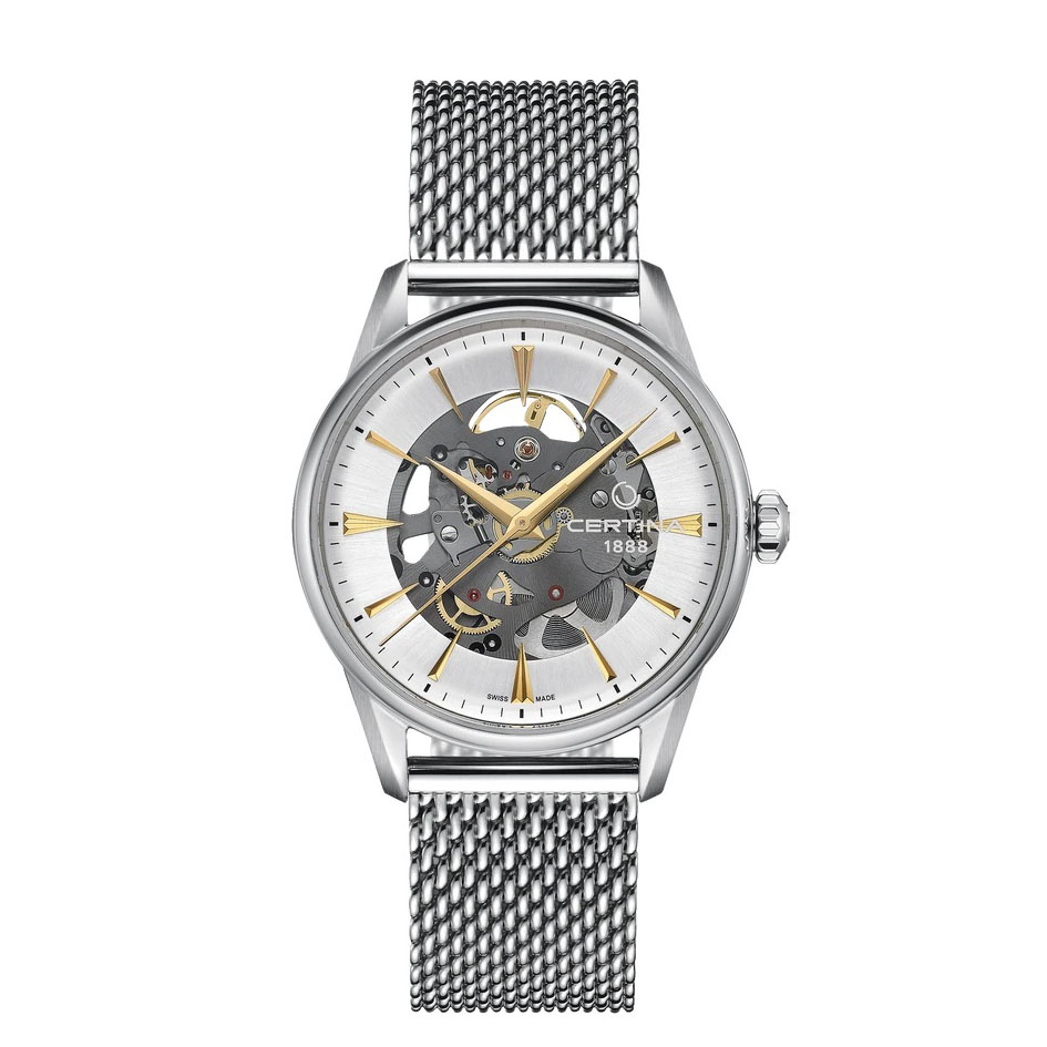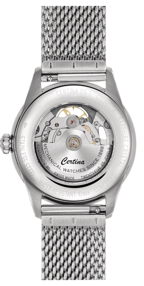Certina är stolta över att kunna presentera nya DS-1 Skeleton, som kombinerar den minimalistiska estetiken hos den klassiska Certina DS-1 med en elegant och spännande design med öppen urtavla. Den nya serien har ett runt fönster i urtavlan som gör att ljuset kan utöva sin magi när det faller på Powermatic 80-urverket i klockans hjärta.