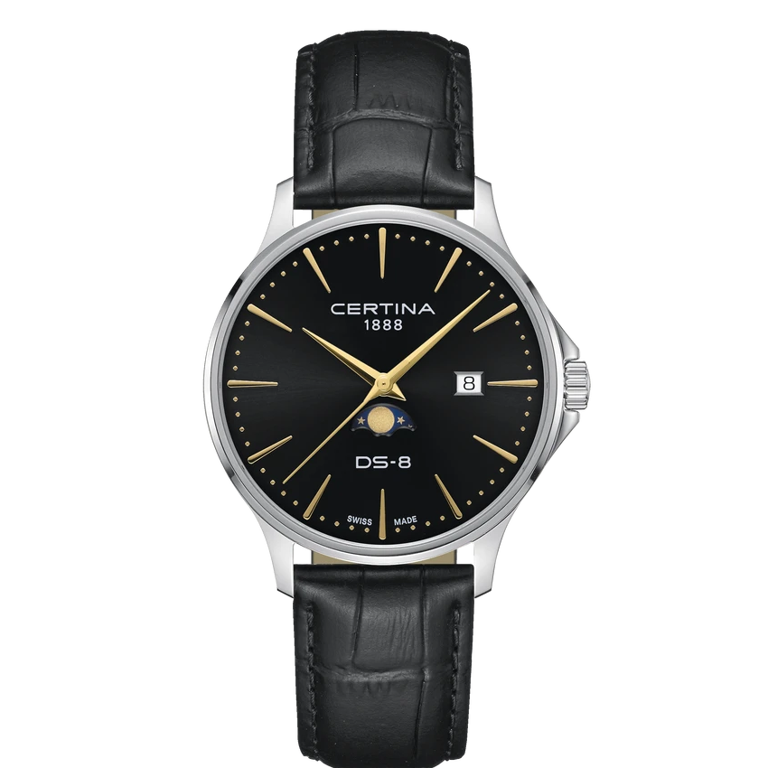 I denna modell kombinerar Certina de klassiska månfaserna med en ren, modern design. Boetten är 41 mm i diameter och utgör en modern gestaltning av ett traditionellt fenomen. Samtidigt döljer den ett precisions-kvartsurverk med COSC-kronometercertifikat.