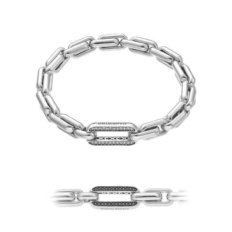 Armband i 18 karat guld med utdragbar länkkedja och dubbelsidigt ovalt element med vita diamanter på ena sidan (0,14 ct.) och svarta diamanter (0,17 ct.) på den andra sidan.