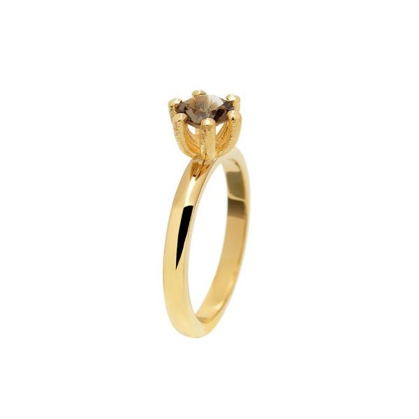 Cocktail kännetecknas av gnistrande stenar i klofattningar och möten mellan matta och blanka ytor. Ringen har en mjuk klassisk form och blank yta. Den elegant slipade stenen vilar i en matterad fattning med blanka toppar. Ringen finns i tre stenstorlekar, denna är den största. Du kan bära en eller flera och varför inte tillsammans med ett par matchande Cocktail örhängen. Denna är med rökkvarts.