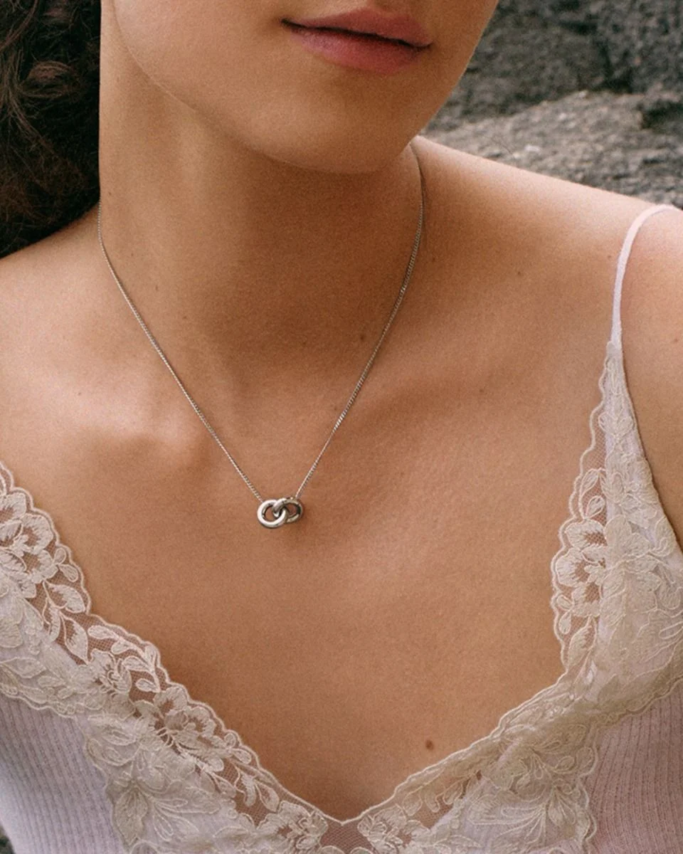 Chunky Eternal är en modern klassiker med mjuka rundade former som löper runt varandra i oändlighet. En uppdaterad version av vår omtyckta serie Eternal Orbit. Halsbandet med den mjuka formen på en pansarlänk ger ett elegant intryck till både vardag och fest, här i stål