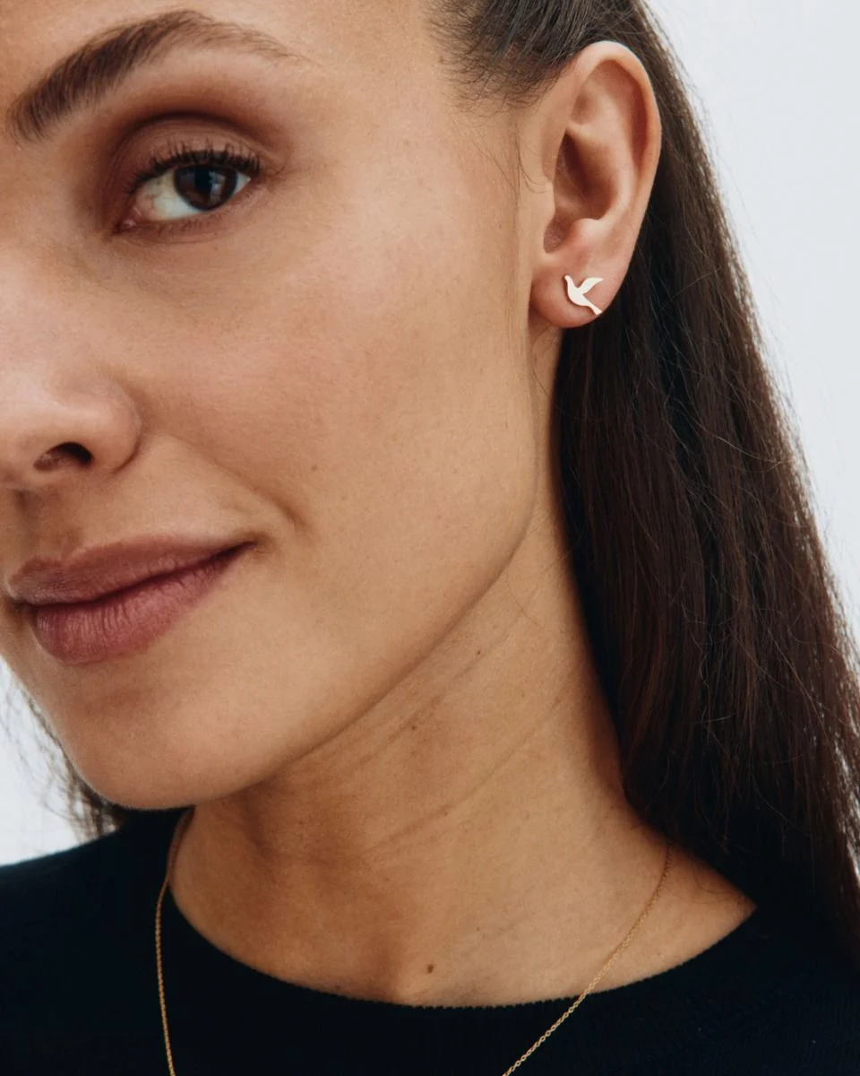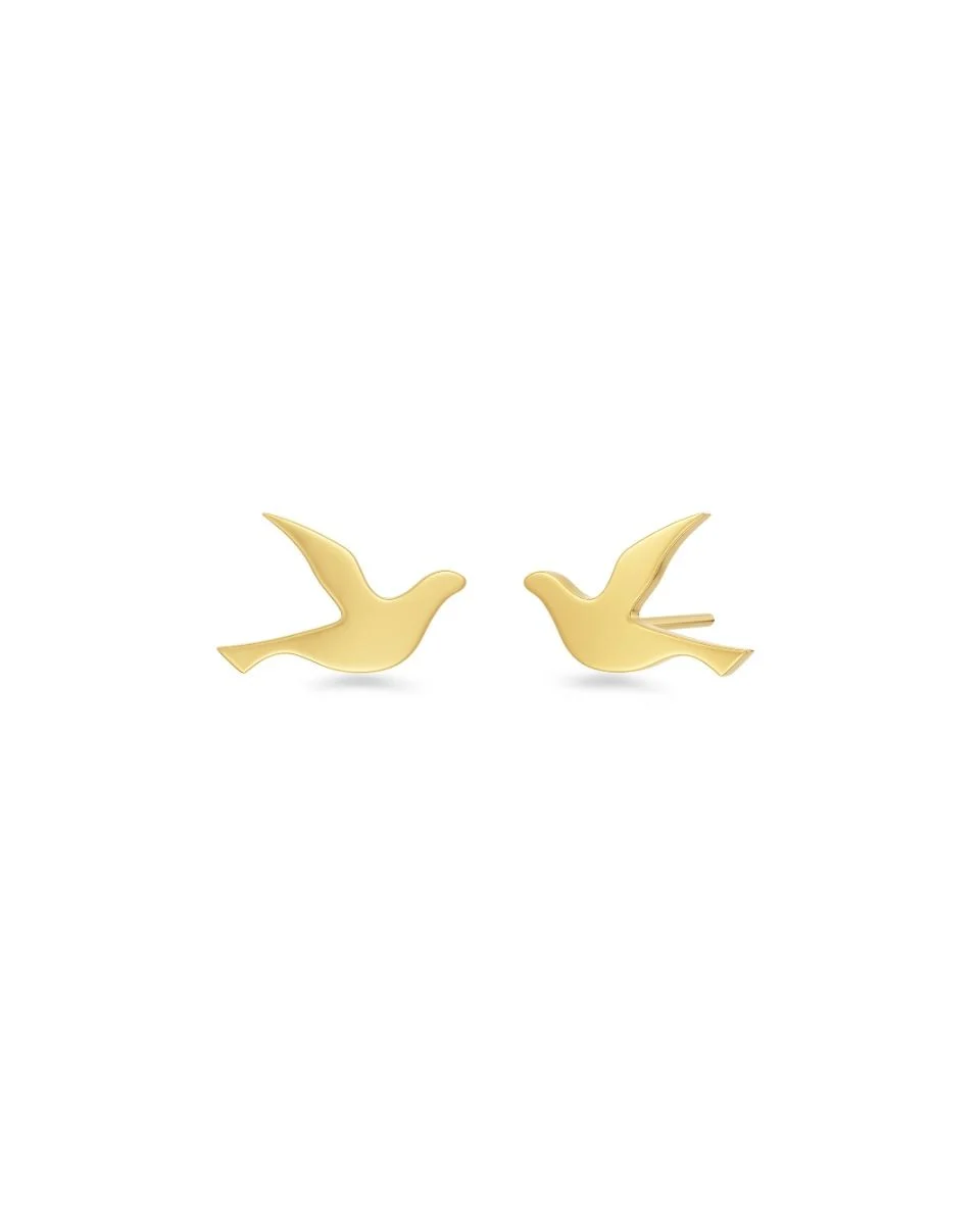 I fina serien Dove har vi lyft fram symbolen för fred! Här är örhängen med en liten duva som här ses i blank 14K guldplätering. Kombinera gärna studsen med halsbandet till.