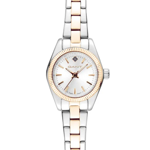 En GANT-klocka är mer än en accessoar. Vi har använt exklusiva och lyxiga material för att skapa en damkollektion som är en hyllning till vår bakgrund inom American Sportswear. Denna klocka är gjord i rostfritt stål med jonplätering i guld och boett med mineralglas. Den har en rund urtavla och tre visare för en elegant och minimalistisk look.