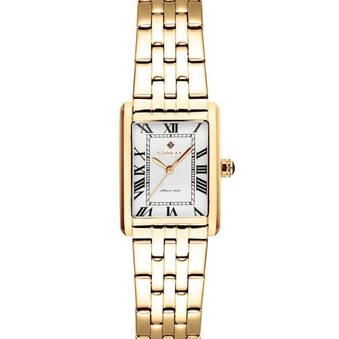 Gant Rhode Island Heritage är en rektangulär damklocka i Guld pvd. Vit urtavla med Svarta romerska siffror, glas mineral