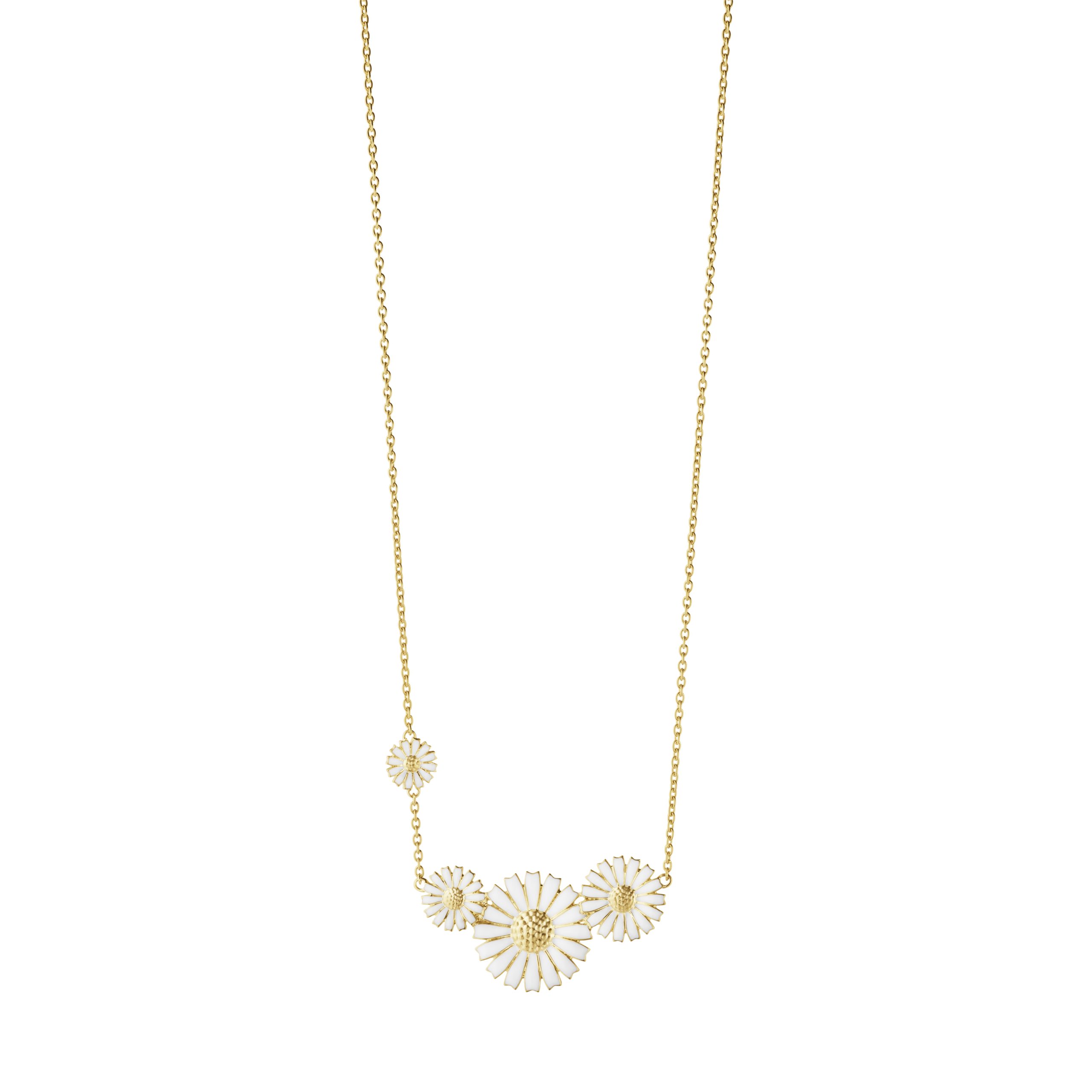 Fyra vackra prästkragar i 18 karat guld bildar detta slående hänge som hyllar Georg Jensens ikoniska smyckeskollektion. Prästkragarna är tillverkade i sterlingsilver och handpläterade i en varmvit emalj, vilket ger liv åt ett elegant och mångsidigt smycke.