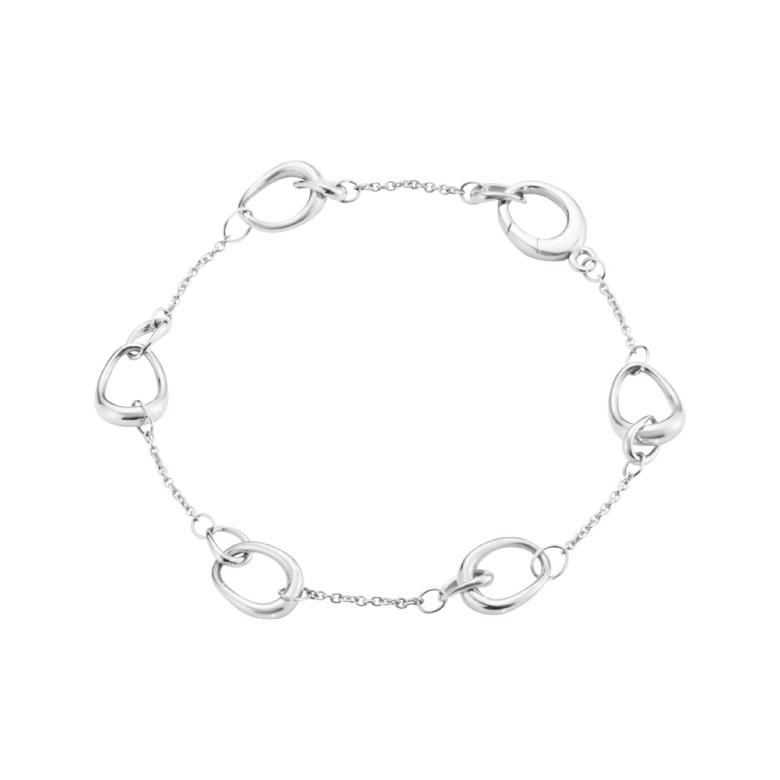 Detta armband är en del av Jacqueline Rabuns Offspring-kollektion. Smyckets stilrena design rymmer större silveröglor som varvas med fina kedjelänkar. Armbandets form rymmer en djup symbolik, där varje sammanlänkat element speglar styrkan i de känslomässiga band som förenar oss människor.
