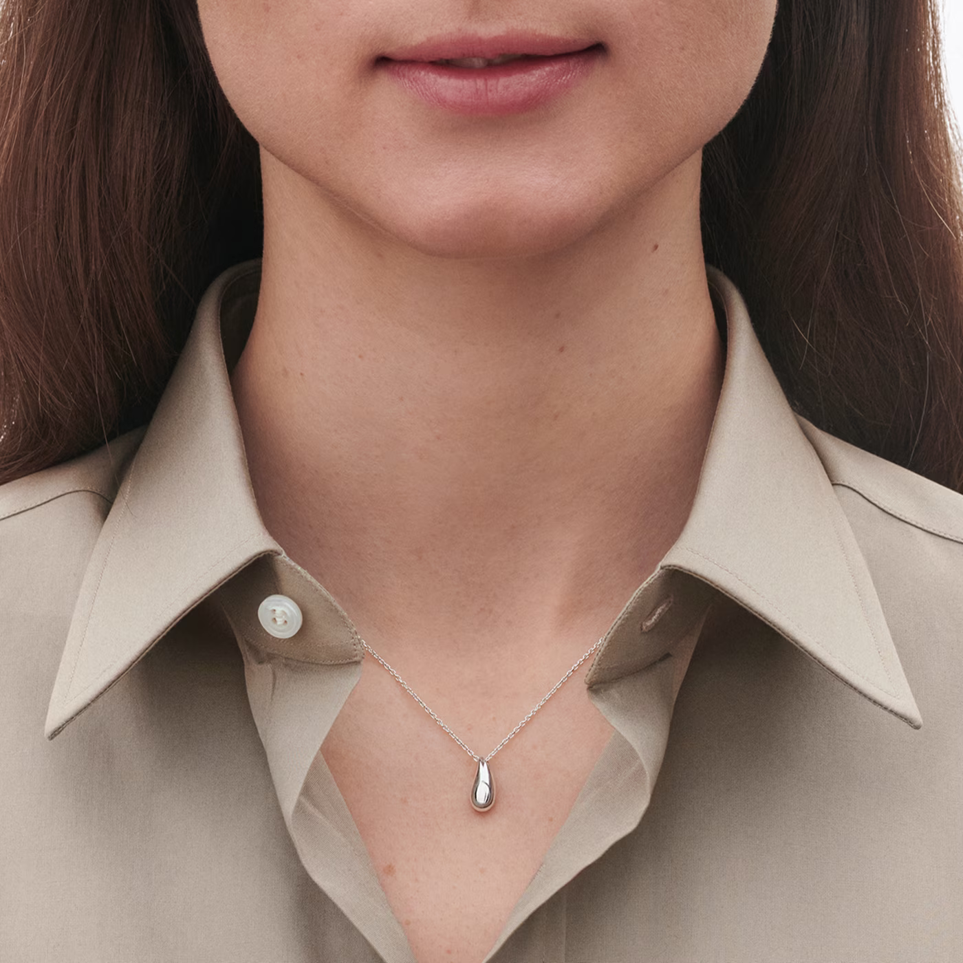 Detta lilla hängsmycke har Reflect-kollektionens droppformade design och ger varje look ett distinkt men enkelt uttryck. Smycket är tillverkat i sterlingsilver och kan enkelt justeras på längden.