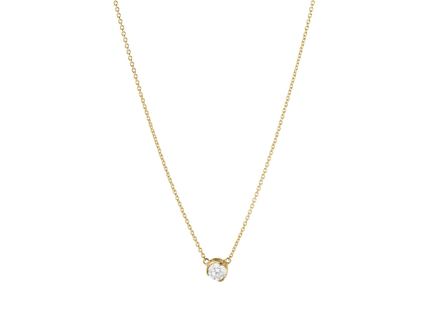 Detta stilrena hängsmycke är en tidlös klassiker, tillverkat i 18 karat guld och utsmyckat med en enda 0,20 carats diamant. Den ansvarsfullt framställda diamanten är infattad efter Georg Jensens signaturinfattning, som är designad för att maximera dess glans.