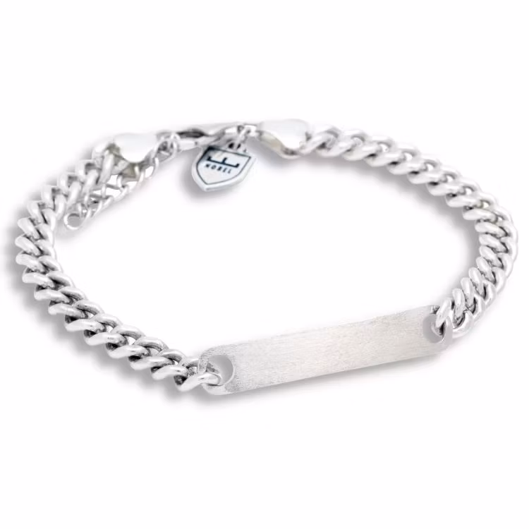 Armband med pansarlänk som har en större graverbar platta som gör att du kan göra armbandet unikt till dig själv eller som en unik och personlig present till någon annan. Armbandet är tillverkat i 925 sterling silver som gör smycket extra exklusivt och blänkande.