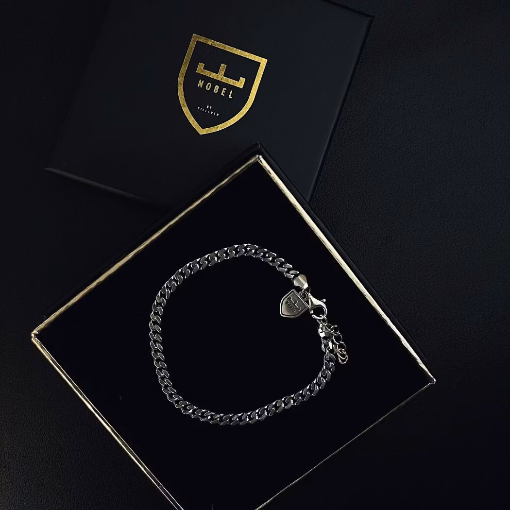 Armbandet har en något mörkare finish då det är tillverkat i oxiderat 925 sterling silver.