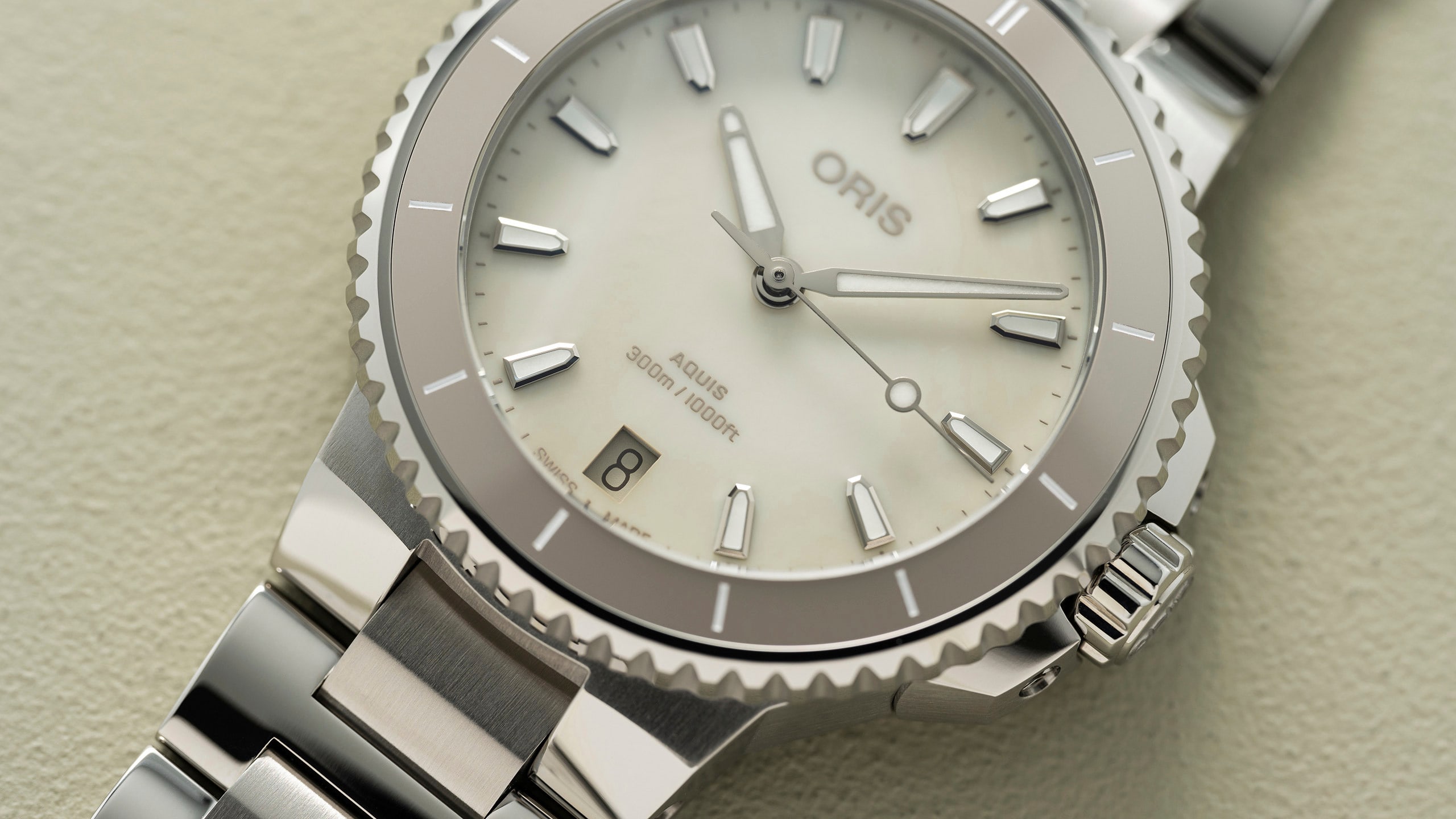 Urtavla: Beige/Sand mother of pearl dial(Pärlemo). Index och visare Superluminova BG W9