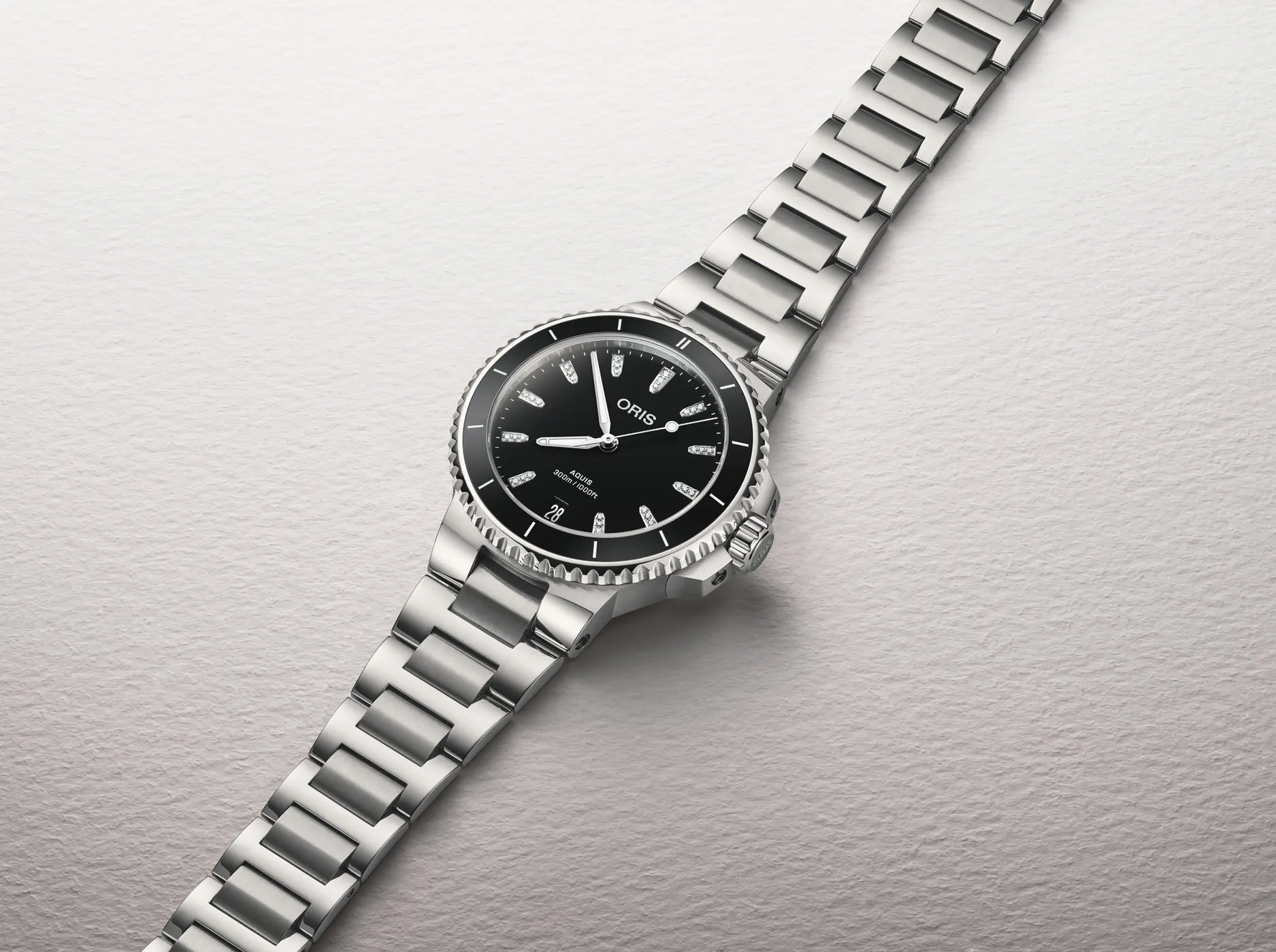 Aquis Date 36,50 mm är avsiktligt mer juvelliknande än sina systermodeller med större boettstorlekar. Nu blir det bokstavligt talat. Denna version med svart urtavla och stålarmband har 11 timmarkeringar, var och en infattade med tre briljantslipade, labbodlade diamanter.