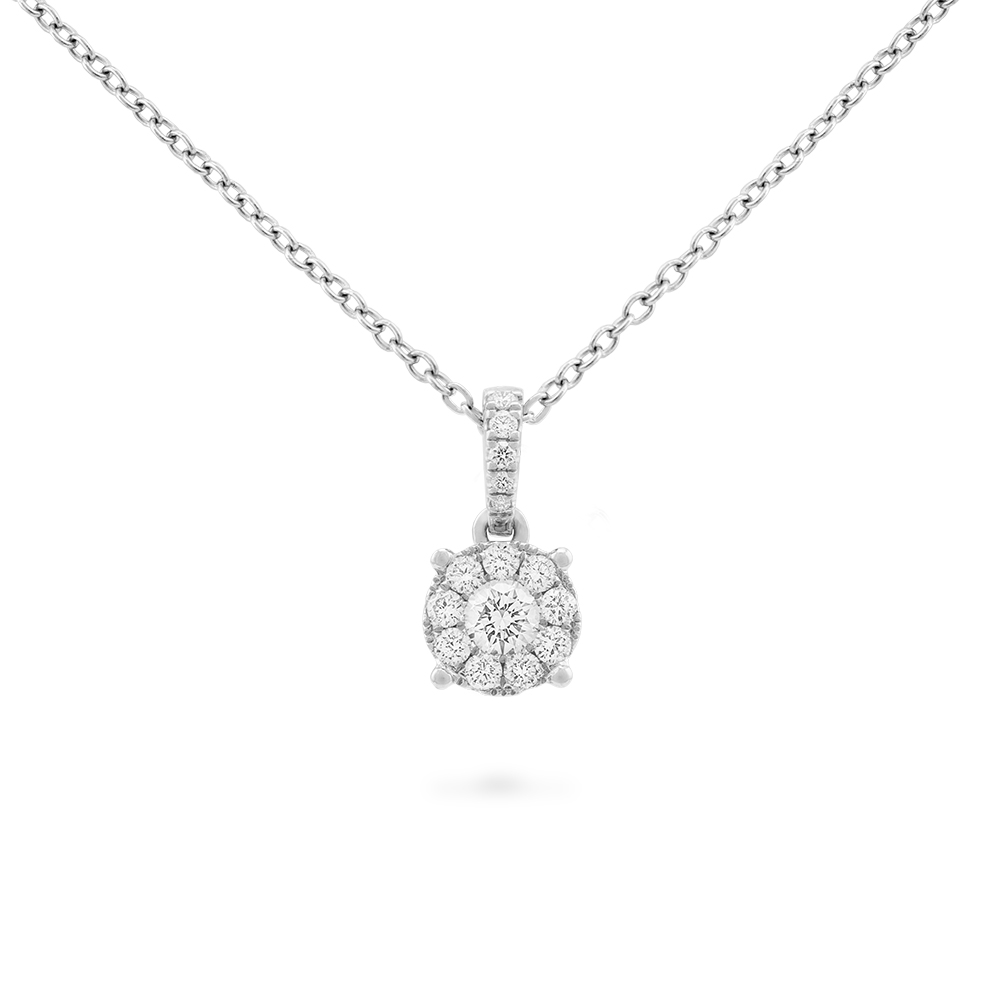 Detta hänget är gjorda med en center diamant och mindre stenar runt om. Otroligt fint satt med mikroteknik