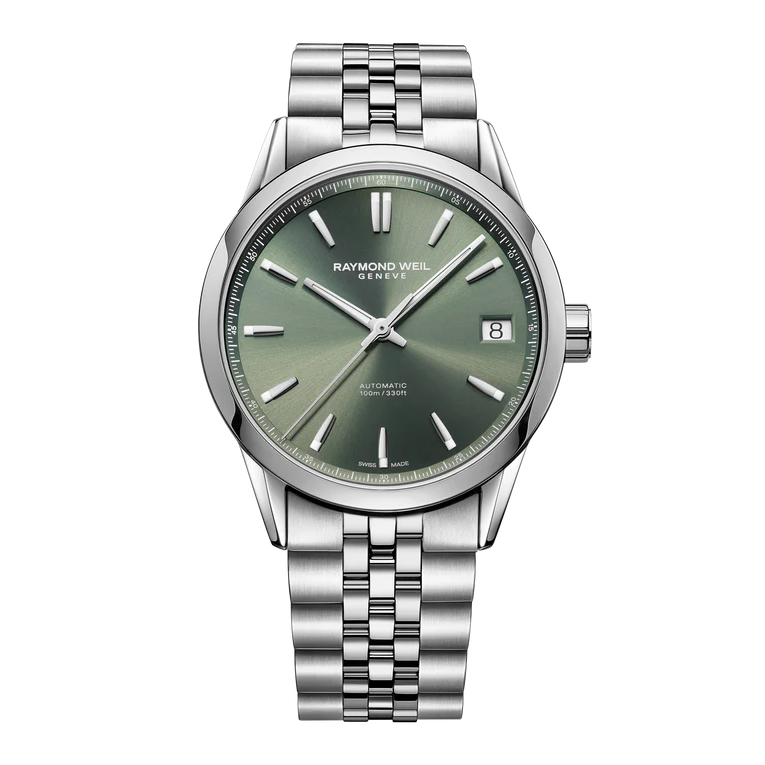 Den fängslande skogs gröna urtavlan skapar ett sofistikerat djup och dynamiskt ljusspel. Applicerade index förstärkta med vita Super-LumiNova och raffinerade visare säkerställer optimal läsbarhet, medan den stora datumvisningen vid klockan 3 ger en modern karaktär. En subtil minutspårning placerad på den inre infattningen kompletterar den harmoniska designen.