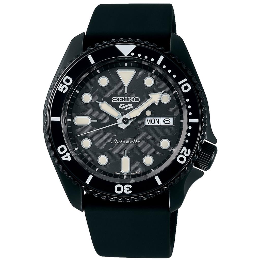 Detta är en speciell begränsad upplaga. För första gången i SKX-serien används ett ”kamouflagemönster” på urtavlan.