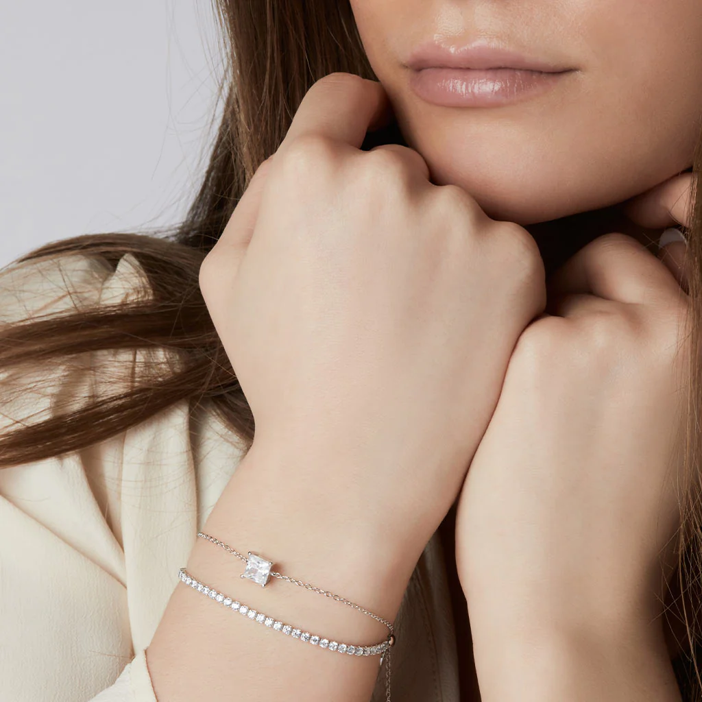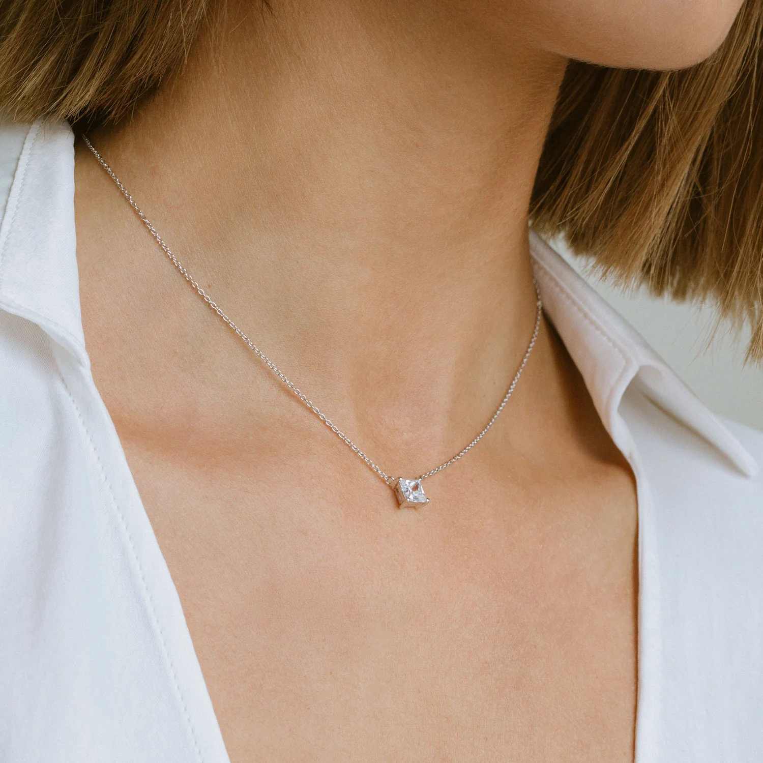 Halsband av 925 Sterling, polerad yta, med vita hand placerade skurna zirconia stenar.