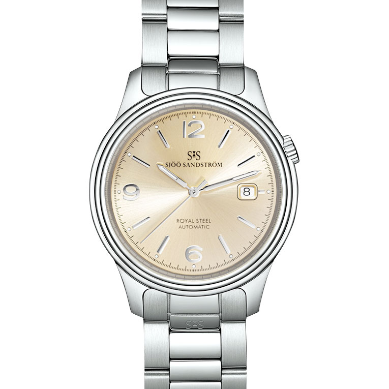 Royal Steel Classic erbjuder ett tidlöst uttryck med en svensk twist av elegans, och utgör själva kärnan och grunden för Sjöö Sandström. Denna klassiska klocka representerar den 4:e generationen av Automatic S1, som var den första klockan vi gjorde och det första armbandsuret någonsin som designades och tillverkades i Sverige, med premiär 1993 med vit urtavla och svart armband. De tre ringarna på fodralets yttre kant ger både en slät yta som eliminerar repor mot skjortärmen och en representation av vår plats i universum – Stockholm/Sverige/Världen.