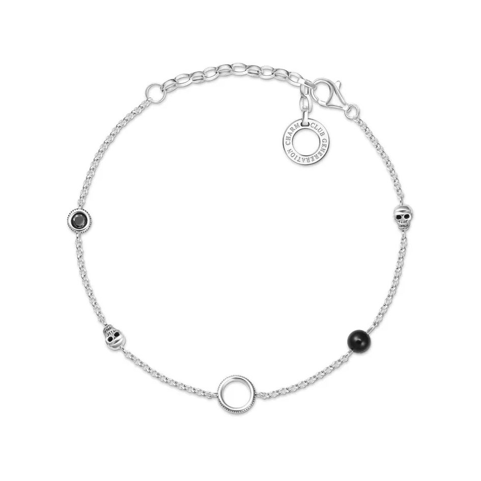 Armband stenar/dödskalle silver