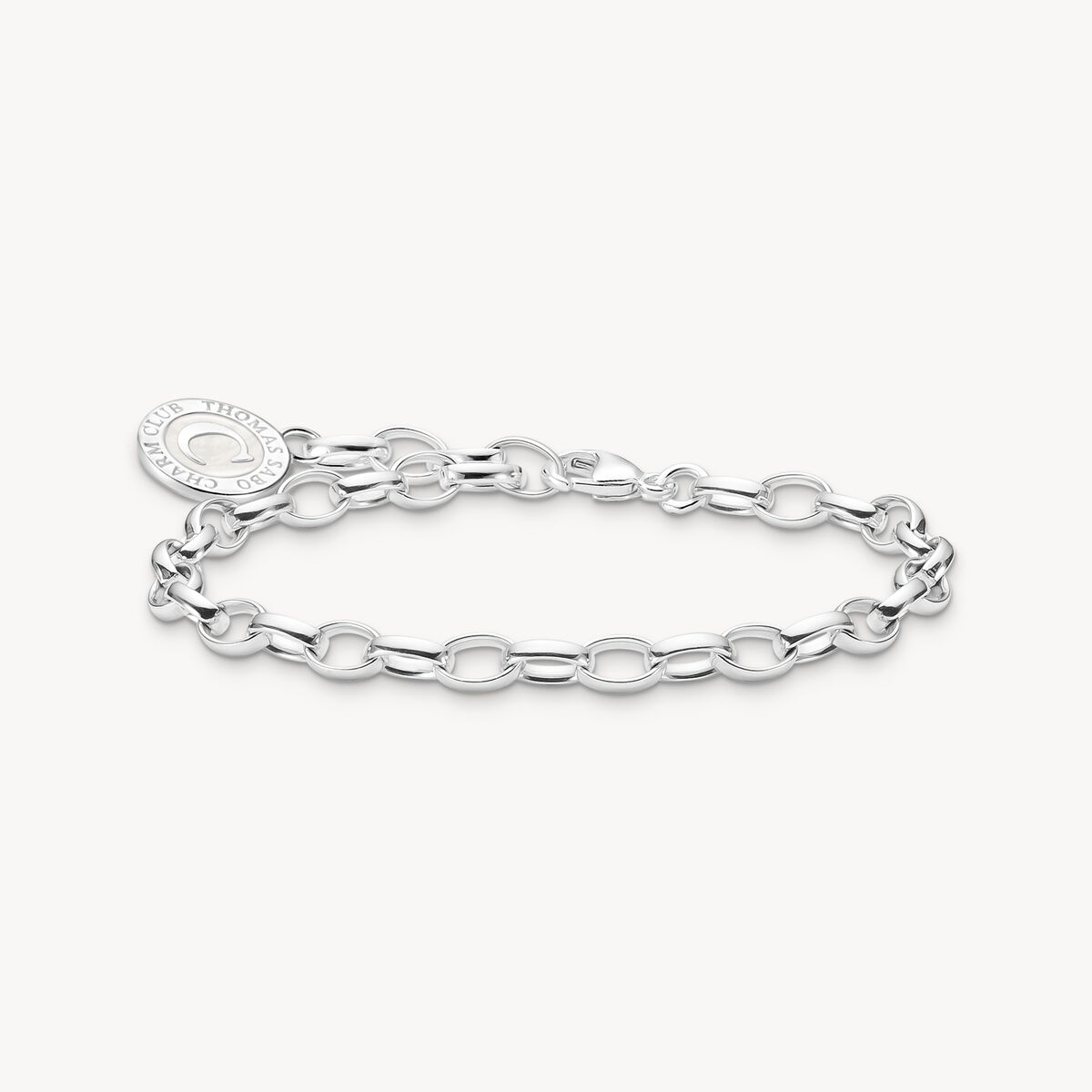 Änden på länkarmbandet pryds av ett runt THOMAS SABO Charm Club mynt med skimrande, vit kallemalj.