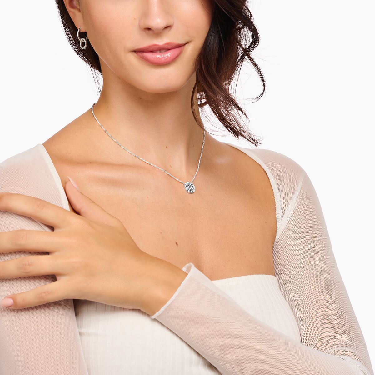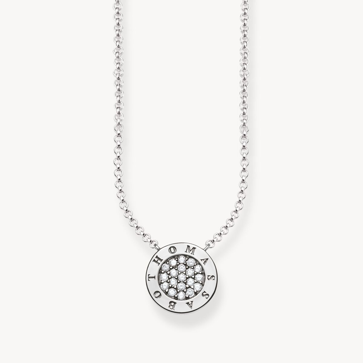 Klassisk elegans: Den vita zirkonia-pavén på det runda hängsmycket i 925 sterlingsilver gnistrar underbart och gör denna kedja med karbinhake och förlängningskedja till en särskild ögonfångare.