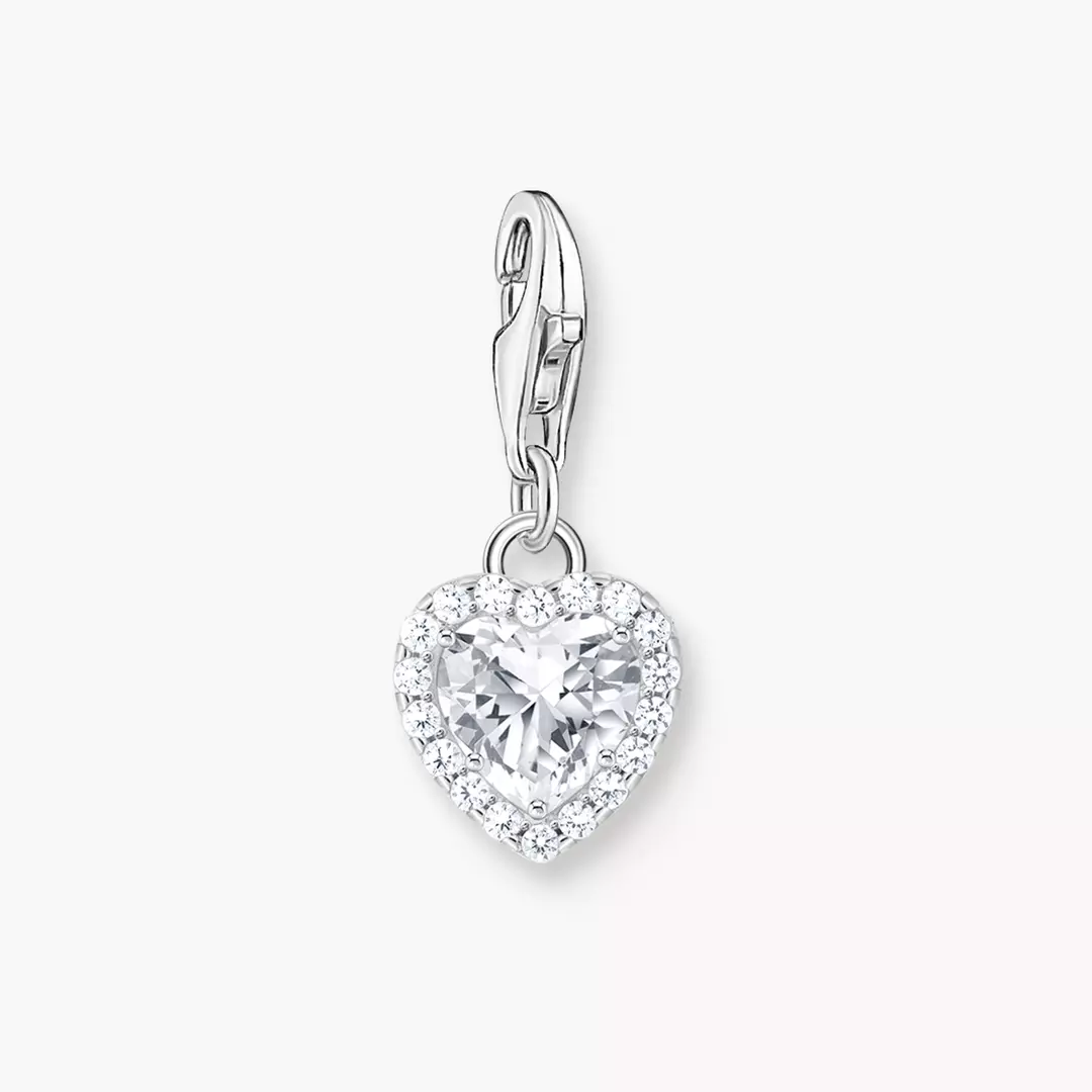 Ge dig själv en gåva eller visa din favoritperson hur du känner med det här charm-hängsmycket i återvunnet 925 sterling silver. Det är intrikat infattat med en facetterad, vit zirkonia i form av ett hjärta, som ramas in av andra små zirkoniastenar. Detta skapar ett gnistrande fyrverkeri.