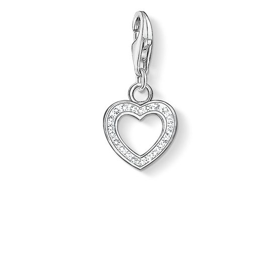 Charm-hängsmycke Hjärta med vita stenar, silver