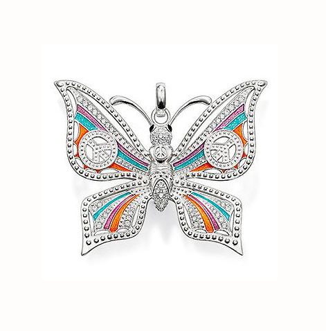 Hängsmycke i sterlingsilver och mängde med färgade stenar. 2 st fredsmärken i cubic.