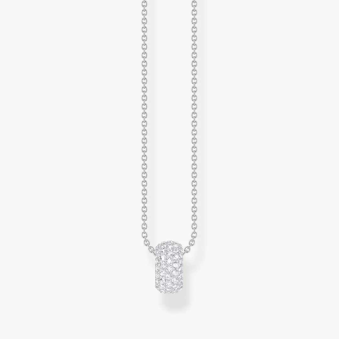 Det här halsbandets blickfång är hänget som är infattat med fina, vita zirkonia-pavéer på framsidan. Denna eleganta, moderna design representerar perfekt den sanna essensen av varumärket THOMAS SABO och hyllar tidlös skönhet. Såväl halsbandet som hänget är tillverkade av återvunnet 925 sterling silver. Längden kan justeras mellan 40 och 45 cm.