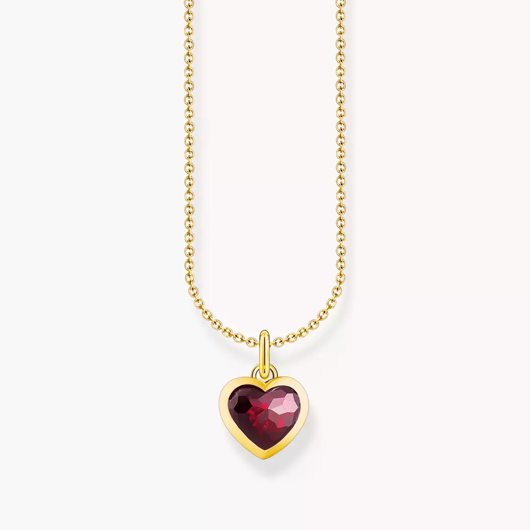 Halsband med mörkrött hjärtformat hänge, guldpläterat