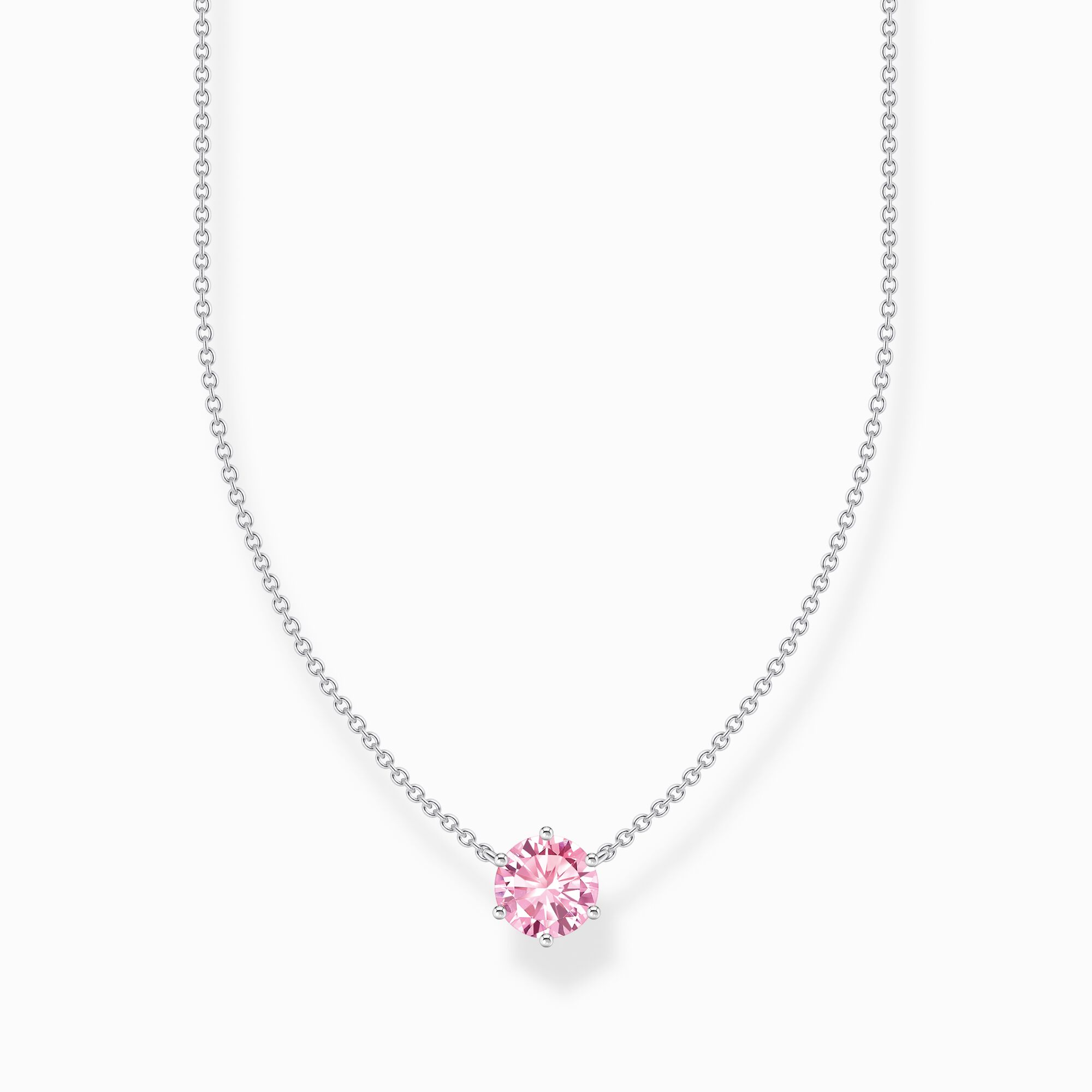 Ett allroundsmycke för alla tillfällen: Detta fina halsband med hängsmycke av återvunnet silver har en enkel och elegant design. Det är den perfekta accessoaren som passar lika bra till den klassiska kontorslooken som till kvällens eleganta outfit. Den rosa, rundslipade zirkoniastenen är ett tidlöst blickfång som får hänget att glittra.