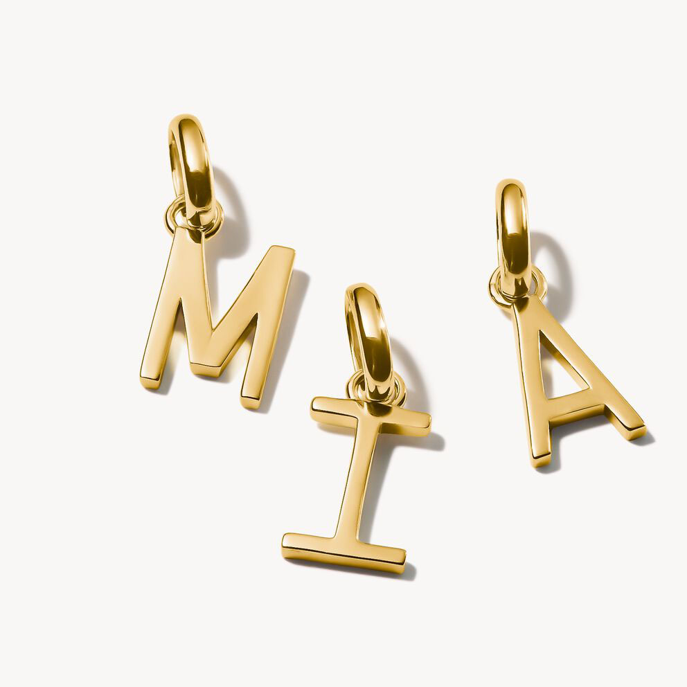 Bokstäver kan ha en personlig betydelse. Vad betyder A för dig? Bär detta charm-hängsmycke i återvunnet silver med 18k guldplätering som en talisman eller ett personligt smycke som berättar din historia. Det har en enkel design i form av bokstaven A och en filigranögla. Du kan bära det på ett halsband eller armband för att matcha din stil. Kombinera den guldfärgade bokstavscharmen med andra för individuella smyckeskreationer med mening.