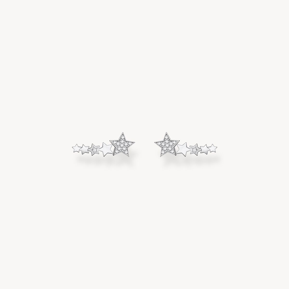Ett måste-ha för alla som satsar högt: Det finns inga gränser för överjordiska styles när man har den strålande öronklättraren i stjärndesign. Det förtrollande stiftörhänget verkar nämligen vid första anblicken som ett slags lysande kometsvans som vid närmare betraktande visar sig vara sammansatt av flera stjärnor i avtagande storlek. En del av stjärnorna är dessutom täckta av zirkoniastenar, satta i noggrann pavéteknik. Öronklättraren är därför det perfekta öronsmycket för den populära kosmostrenden.