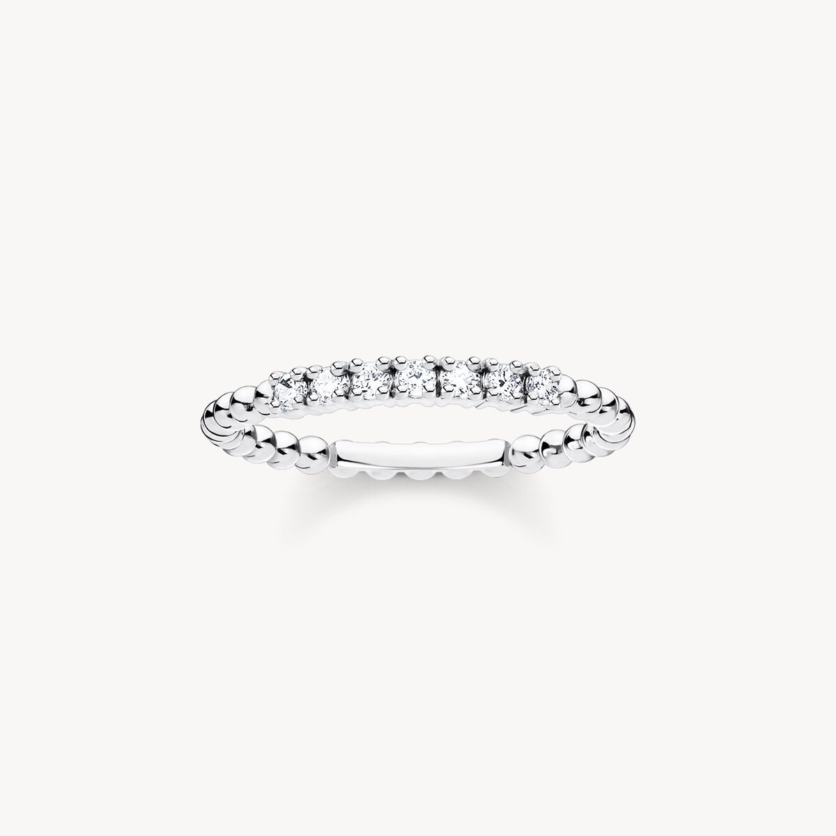 It’s time to shine – dots-ringen ur Charming-kollektionen från THOMAS SABO övertygar med stilfull lätthet och flickaktig charm. Smycket har tillverkats för hand i mycket fint lupparbete och fascinerar med sitt unika utseende. Trots den vid första anblicken sköra framtoningen garanterar dots-ringen med sina i mitten uppradade zirkoniastenar strålande ögonblick. Smyckets kulformade struktur fångar genast ögat och möjliggör både klassiska looks och ring stacking med extraordinära statementsmycken.
