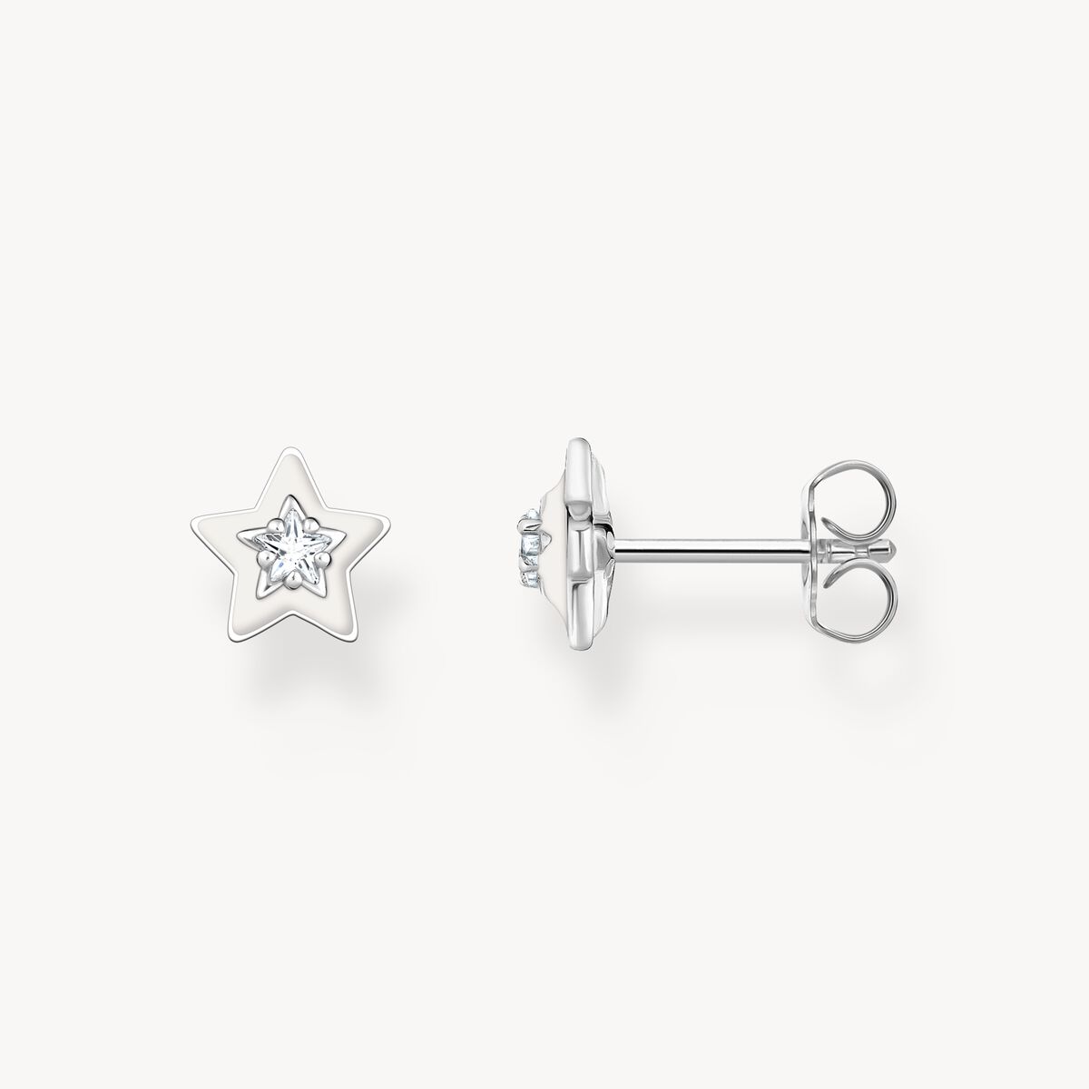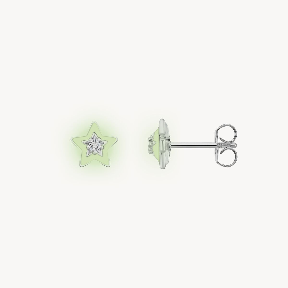 Shining bright like a star: Stiftörhängena är av högkvalitativt 925 sterlingsilver och har formen av en tredimensionell stjärna. I mitten strålar en vit, stjärnslipad zirkoniasten. Speciell detalj är den handmålade, skimrande vita kallemaljen som lyser i mörkret. Fina graverade linjer pryder baksidan. Mixa och matcha med andra stiftörhängen, creoler och öronsmycken för en personlig look.