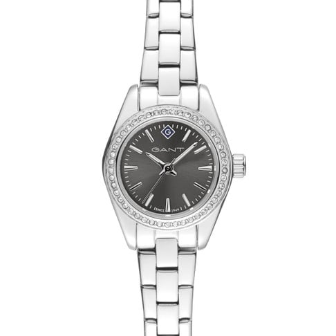 En GANT-klocka är mer än en accessoar. Vi har använt exklusiva och lyxiga material för att skapa en damkollektion som är en hyllning till vår bakgrund inom American Sportswear. Denna klocka är gjord i rostfritt stål och boett med mineralglas och stenar runt tavlan. Den har en rund urtavla och tre visare för en elegant och minimalistisk look.